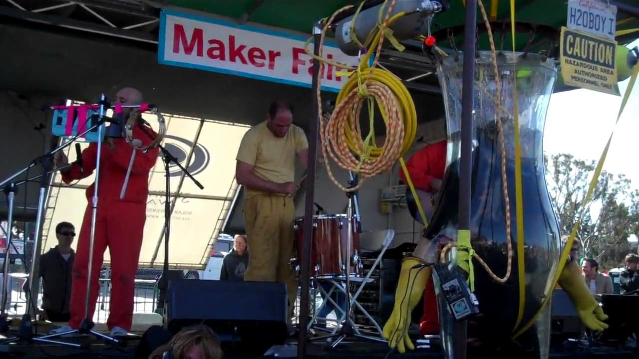 Yesterday we played a short acoustic set at Maker Faire. Underwater. More or less. This video of the experience made its way onto Gizmodo, so we thought we’d post it here as well. Feel free to link to any other videos or photos in the comments section.