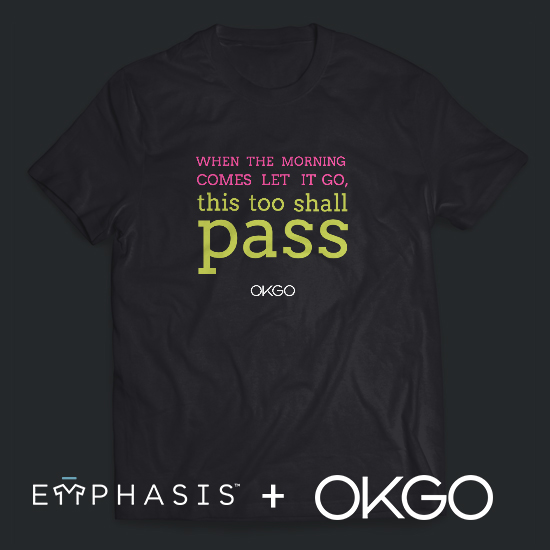 We’ve teamed up with Emphasis to let you personalize your own OK Go lyric t-shirts! Once you’ve picked your favorite lyric, the shirt color, fonts, ink colors, and layout are your call.